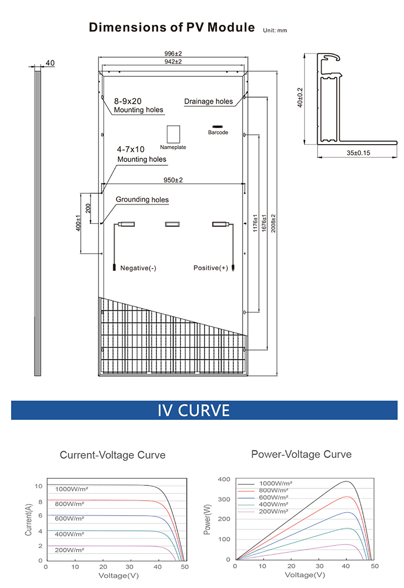 Irradiance 1000W/m2, Cell Temperature 25℃,Spectrum AM 1.5 |
