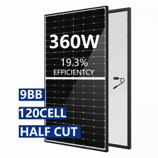 Black frame 360w 120 half cell mono solar panel